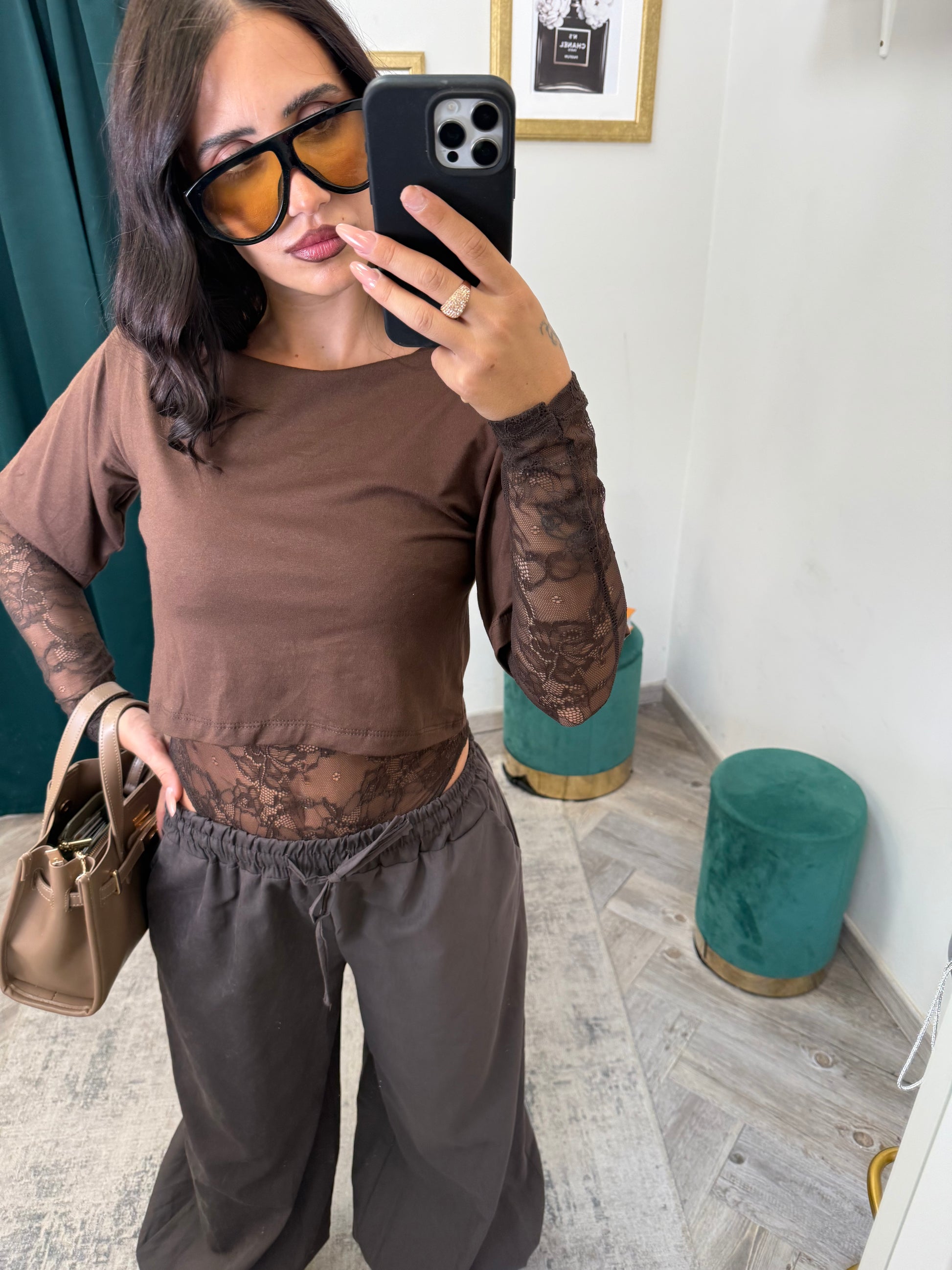 Body t shirt manica corta e pizzo